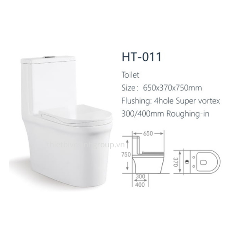 - Bồn cầu Hwata HT011 ứng dụng kỹ thuật xả thẳng tiên tiến cuốn trôi mọi vết bẩn