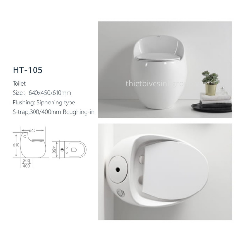 - Bồn cầu Hwata HT105 ứng dụng kỹ thuật xả thẳng tiên tiến cuốn trôi mọi vết bẩn