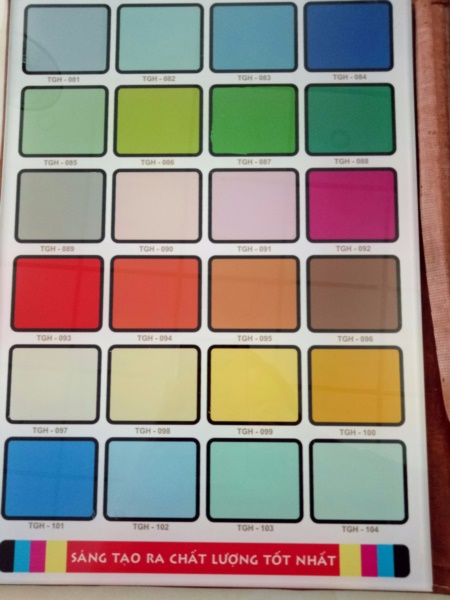 Để làm 1 phòng bếp đẹp và sạch sẽ thì không thể thiếu kính bếp nếu bạn không sử dụng đá ốp. Kính bếp dễ lau chùi khi chiên nấu thức ăn bị bắn vào. Là loại kính cường lực được sơn 1 mặt nên nó thường có màu trơn như xanh dương, xanh ngọc, vàng chanh, xám,… lựa chọn theo màu sắc bạn thích.