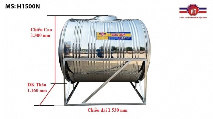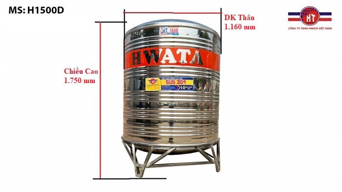 Kích thước Bồn inox Hwata 1,500L đứng - Click Ngay nhận GIÁ ưu đãi